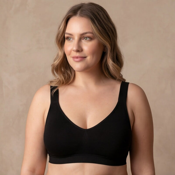 Diseñamos la banda inferior más ancha que lo estándar para distribuir el peso del busto en mayor superficie — menos presión, más soporte, cero marcas.